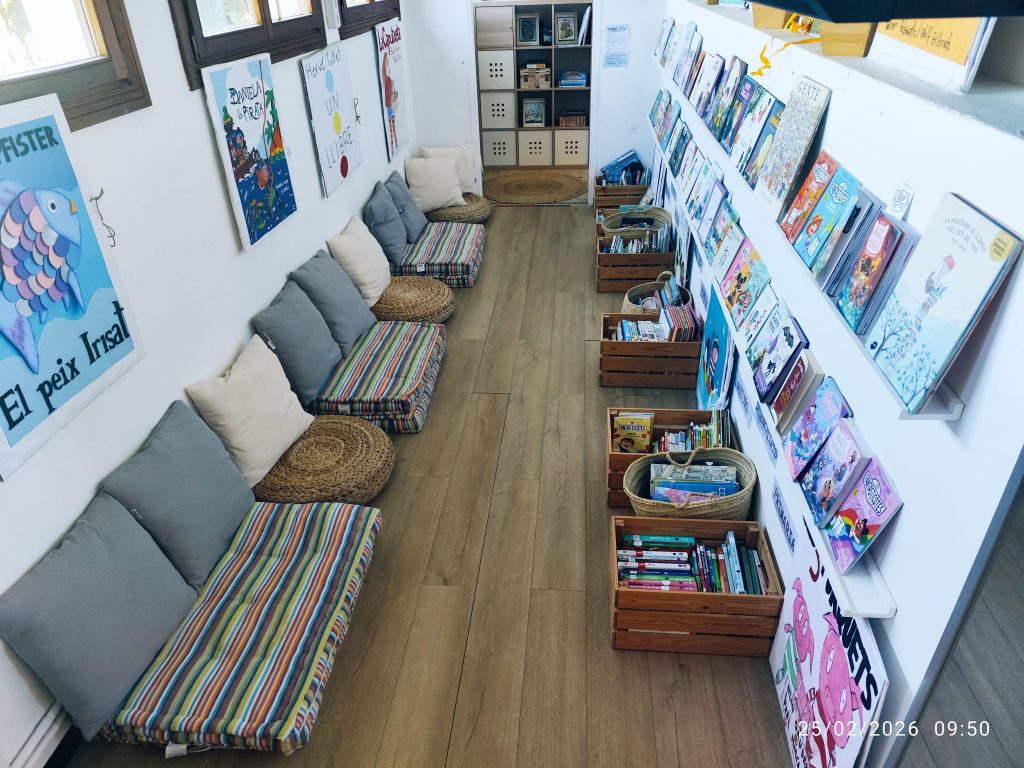 Els llibres estan organitzats amb cura segons el seu context i nivell: hi ha seccions temàtiques que inclouen animals, emocions, contes tradicionals i molts altres mons per descobrir, així com una separació per a educació infantil i primària. Aquesta distribució permet que cada alumne accedeixi amb facilitat a materials adaptats al seu ritme i interès, fomentant l’autonomia, el plaer per la lectura i la curiositat natural.