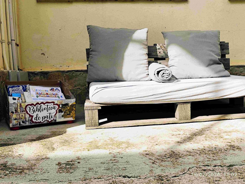 Una de les parets compta amb quatre finestres que inunden l’aula de llum natural, aportant calidesa i serenitat, i ressaltant els colors i detalls de l’espai. Les parets estan enriquides amb portades de contes creades pels propis alumnes, convertint la biblioteca en un lloc viu i únic, on la creativitat dels infants es converteix en part del decorat i de l’experiència de lectura.