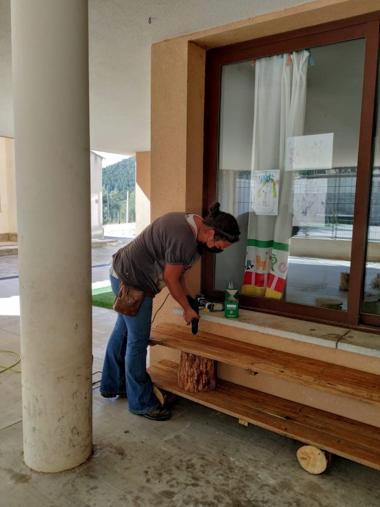 Gràcies al compromís col·lectiu de tota la comunitat vers el nostre projecte educatiu, comencem a gaudir d’aquest canvi. Concretament, volem agrair a na Marina Faure (presidenta AMIPA) la seva iniciativa i el treball tan generós elaborant tot el mobiliari exterior fet amb llenya de pi. GRÀCIES, Marina i Pau. Gest com aquest confirmen el nostre lema “una escola, un poble, una comunitat educativa”.