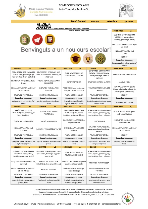 MENÚ SETEMBRE… Llegeix més»