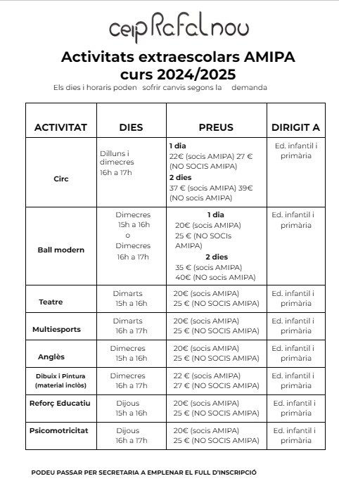 ACTIVITATS EXTRAESCOLARS CURS 2024-2025