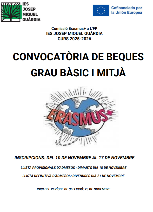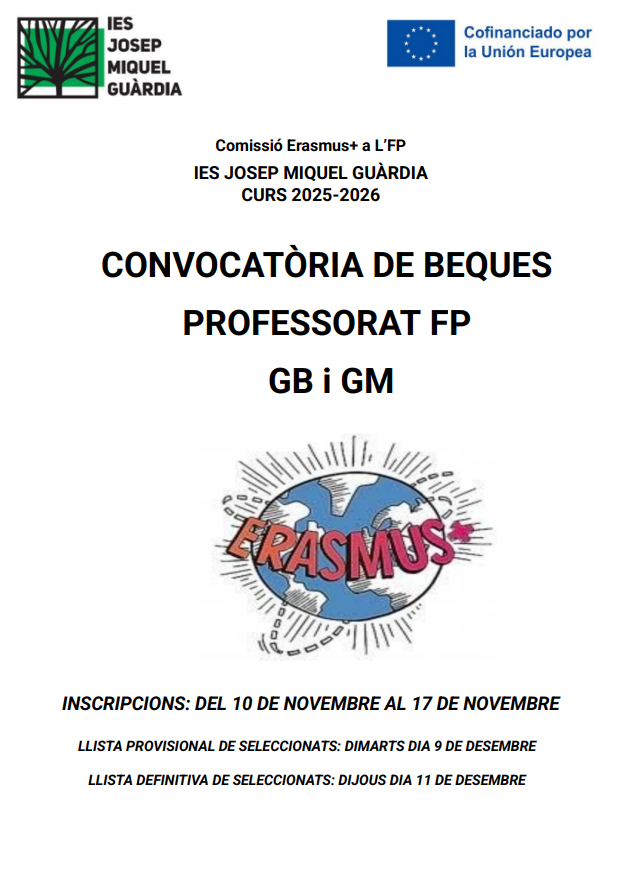 El projecte EuroFP Balears 9 2025-1-ES01-KA121-VET-000327092 està cofinançat pel programa Erasmus+ de la Unió Europea. El contingut d’aquesta publicació és responsabilitat exclusiva del (nom del centre educatiu) i ni la Comissió Europea, ni el Servei Espanyol per a la Internacionalització de l’Educació (SEPIE) són responsables de l’ús que pugui fer-se de la informació aquí difosa.