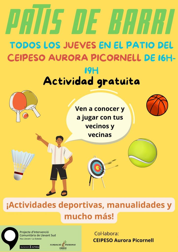 PATIS DE BARRI El Projecte d’intervenció comunitària Llevant Sud i la Fundació Patronat Obrer organitzen activitats cada dijous al pati de la nostra escola.