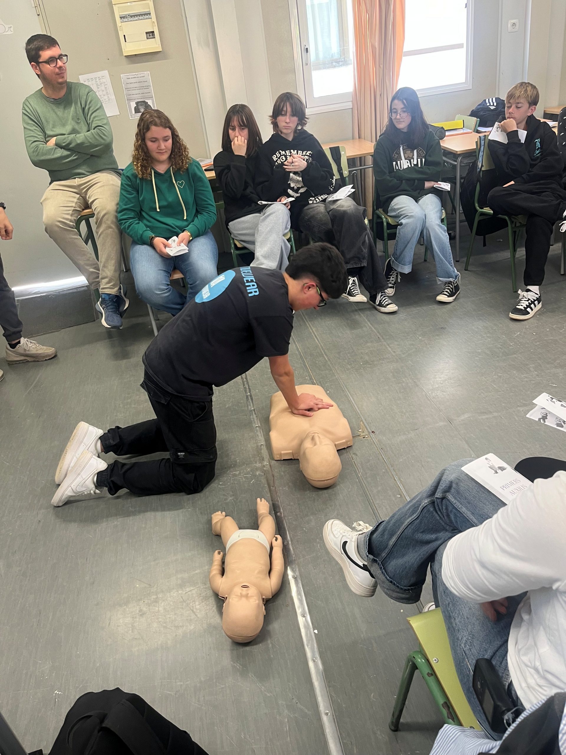 Durant el mes de març, els alumnes de 1rbatxillerat que cursen l’optativa de Tècniques experimentals (TEX) han realitzat uns tallers, sobre primers auxilis, als seus companys de 3rESO. Fent molta incidència amb les tècniques de Reanimació Cardiopulmonar (RCP), PLS, OVACE i DESA. D’aquesta manera més lúdica i pràctica han rebut informació molt necessària que ha de conèixer tot ciutadà.