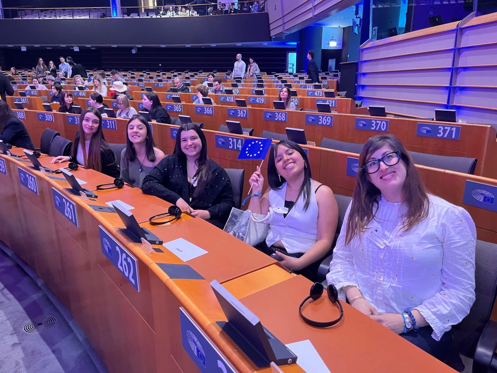 Enguany l’IES Sineu ha estat seleccionat com a Escola Ambaixadora del Parlament Europeu (EPAS) per representar al nostre país al Seminari i Premis Lux de Cinema del Parlament Europeu. En aquest esdeveniment han convidat 4 alumnes de Cultura Audiovisual, que eren ambaixadores Junior del projecte, n’Aina F., Maria Magdalena LL., Mar R. i Maricielo R. i a la seva professora Isabel Serra, les quals han format part dels 28 Instituts convidats, un de cada país membre dels 27 de la Unió Europea i el Regne Unit que encara forma part del projecte.
