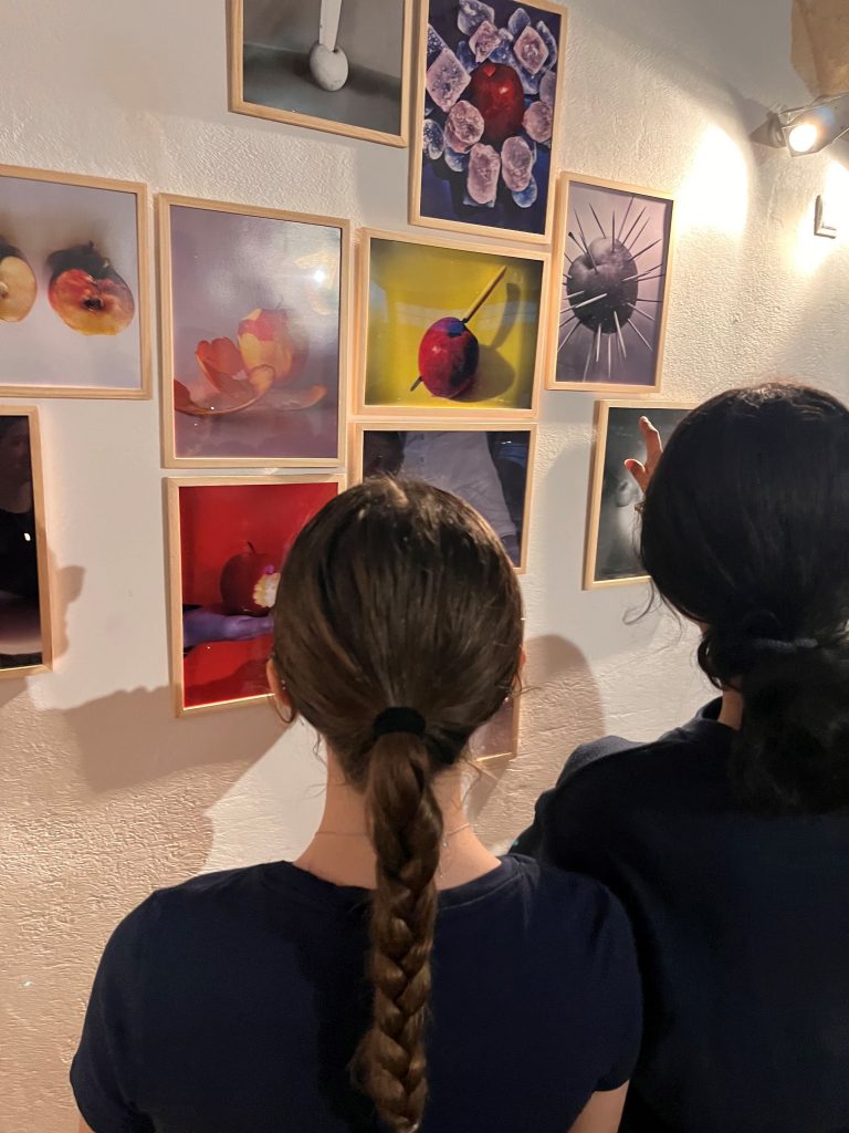 Paral·lelament, els i les alumnes de Cultura Audiovisual van explorar la simbologia de la poma a través de la fotografia, amb múltiples significats: temptació, coneixement, transformació… Creant metàfores visuals, van transformar aquest fruit prohibit en un element que dialogava amb les escultures, obrint nous camins d’interpretació i emoció.