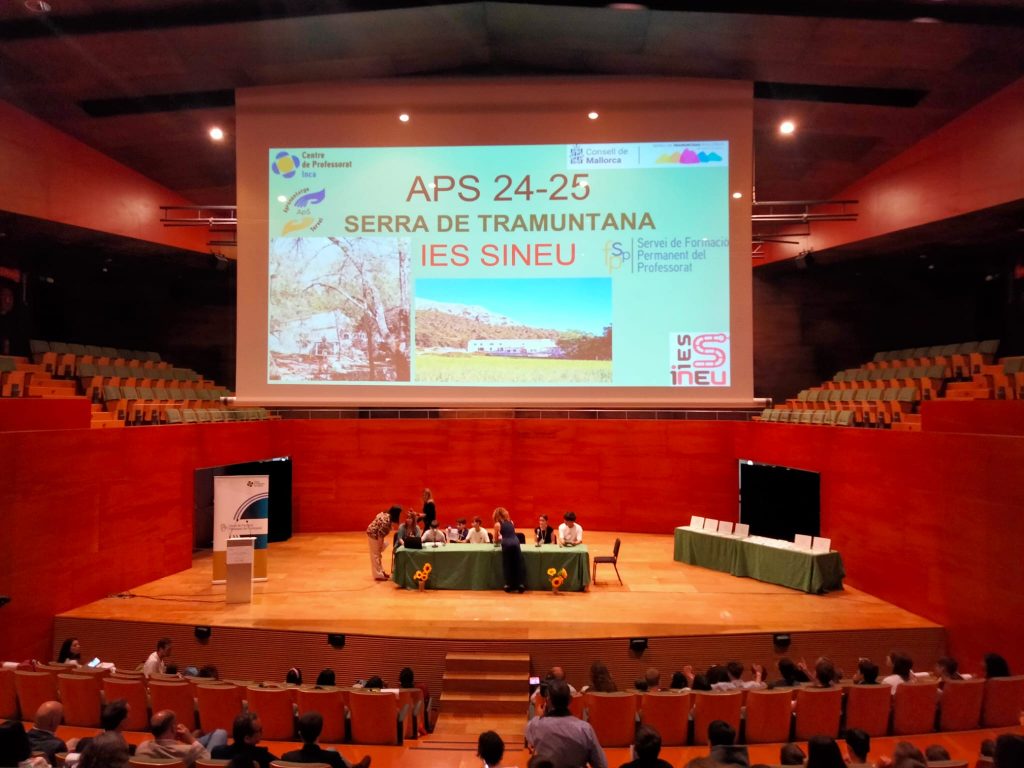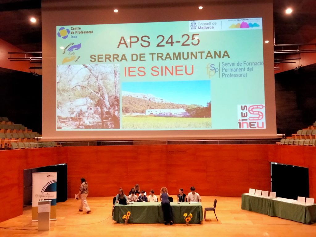 Dijous 29 de maig l’IES Sineu va ser seleccionat juntament amb altres centres per exposar la nostra experiència APS a tots els nivells. Sis alumnes van poder explicar totes les iniciatives de què ha constat el programa aquest curs des de 1r d’ESO a 3r d’ESO. Entre d’altres activitats, han explicat l’experiència APS de tot l’alumnat de 1r d’ESO al Camp d’Aprenentatge de Binifaldó i les tasques que hi feren, les fitxes d’eines i oficis antics que han elaborat des de Tecnologia a 2n d’ESO i els tríptics de l’alumnat de Tecnologia de 3r d’ESO.