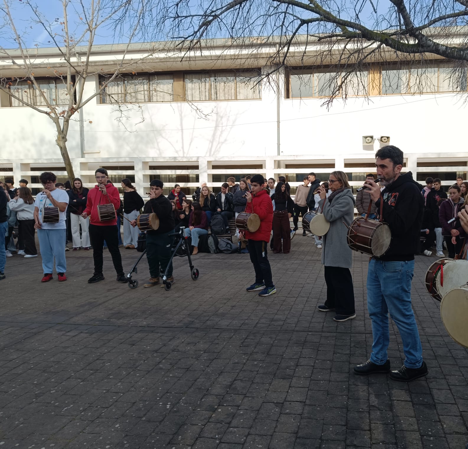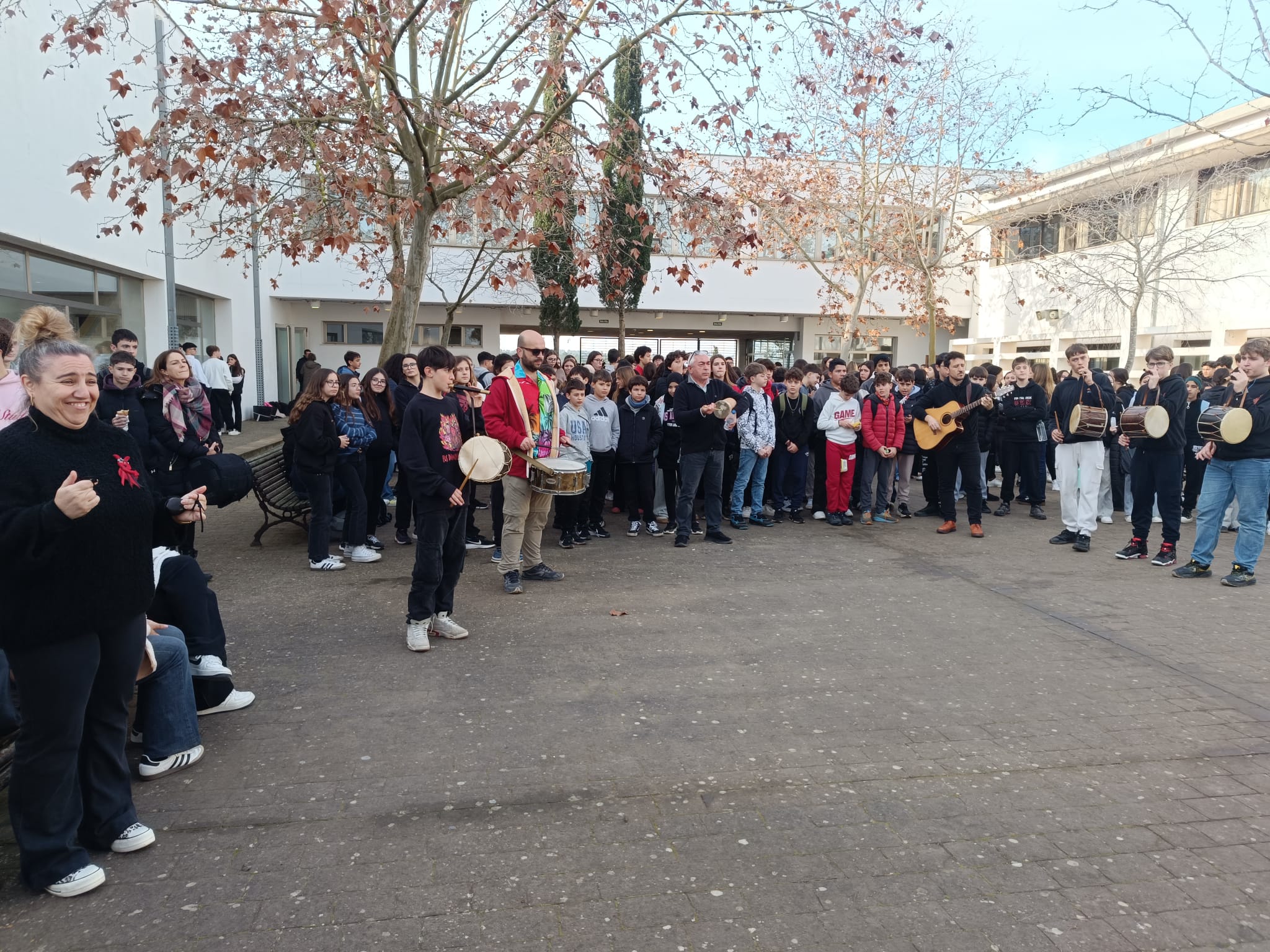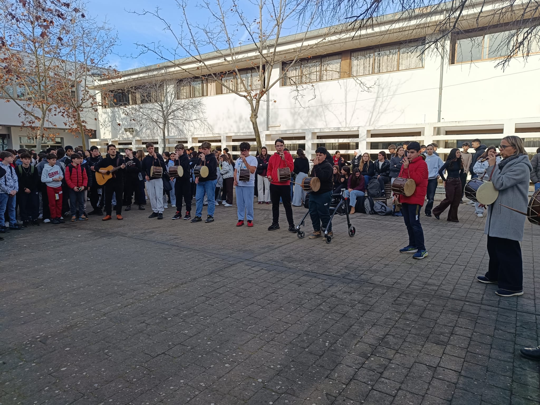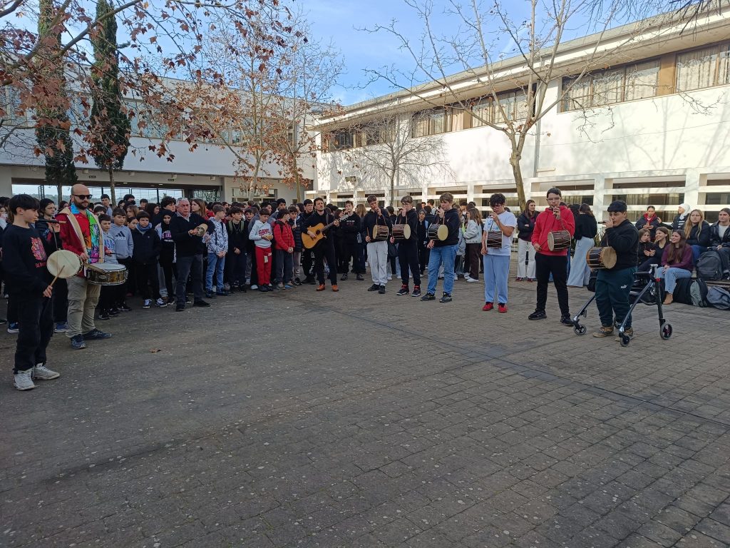 El dia 16 de Gener es va celebrar Sant Antoni a Sineu amb una gran torrada. La Banda de l’institut de Sineu va fer una gran actuació animant i omplint de Música l’ambient. En la sonada no va faltar “la jota de Sant Antoni” a més de la cançó “jo i un pastor”. A més es varen tocar tot un grapat de jotes i boleros per fer ballar a tot l’alumnat i professorat. La banda està integrada per professorat i alumnat del centre que sap tocar algun instrument tradicional o de banda. Es reuneixen un cop per setmana per assajar i preparar les actuacions!!! Tots vàrem gaudir molt de la seva gran actuació i ja esperan la propera!