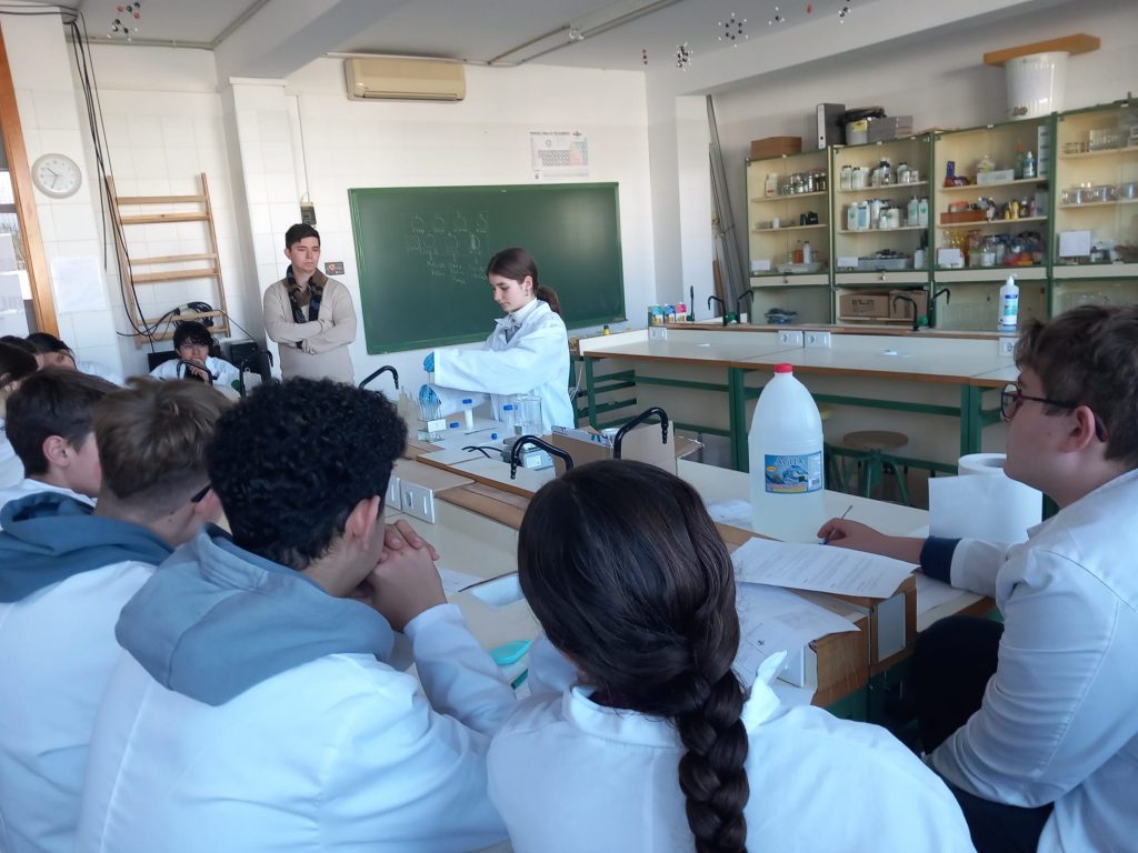 Posteriorment, en el curs de 3r ESO expliquen un taller d’experimentació als seus companys de l’IES Sineu, en aquest cas.