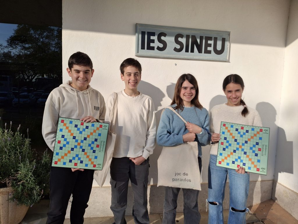 Aquests quatre alumnes són els guanyadors de la lliga d’Scrabble que s’ha organitzat al centre durant el segon trimestre entre l’alumnat de 1r d’ESO. La competició s’ha desenvolupat durant l’esplai dels dimecres i hi han participat deu parelles, que han competit amb entusiasme per aconseguir una plaça al campionat.