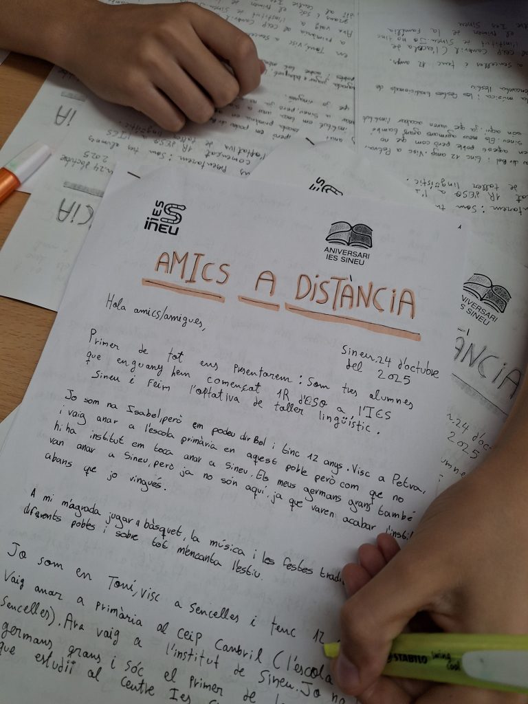 L’alumnat de 1r d’ESO de l’optativa Taller Lingüístic participa en un projecte molt especial: un intercanvi de cartes amb els de 6è de les escoles adscrites al nostre institut.