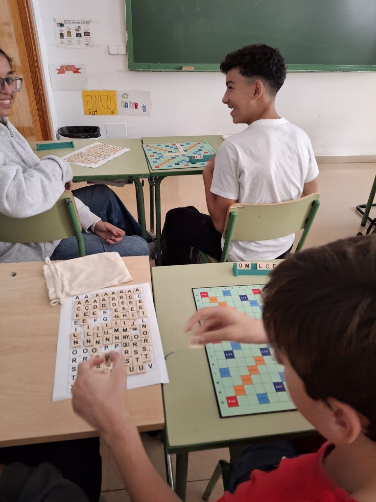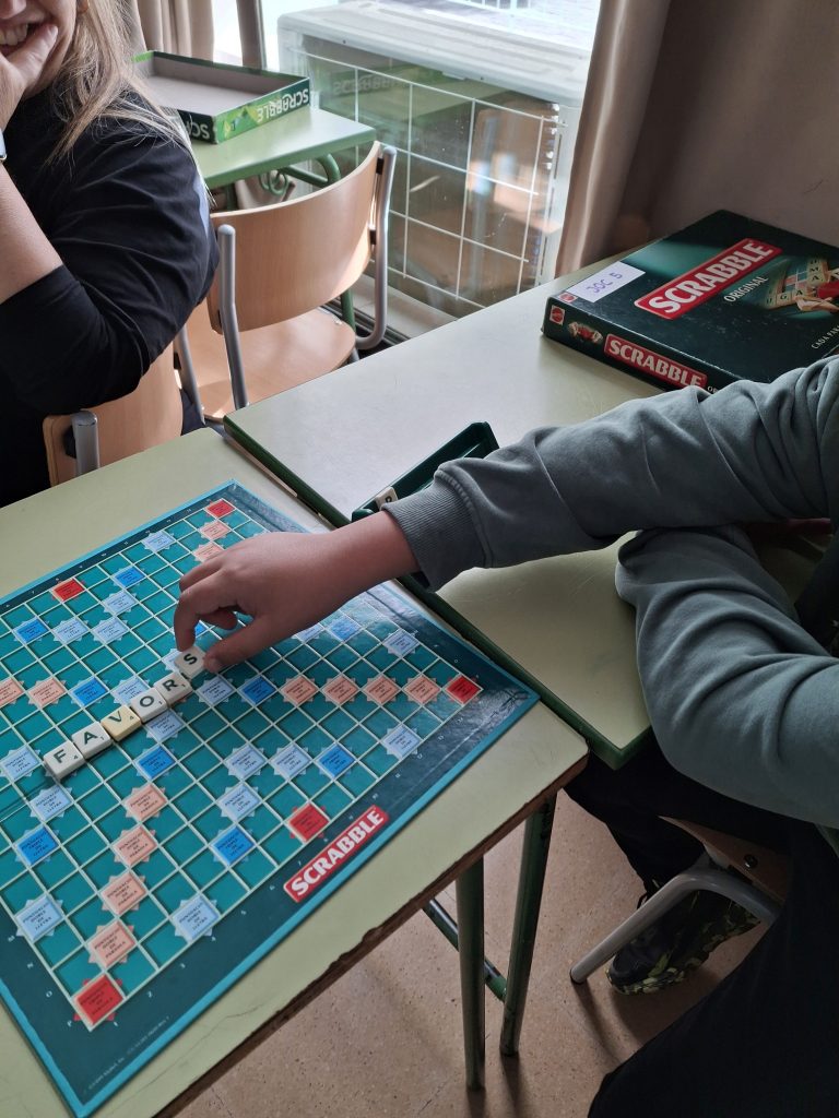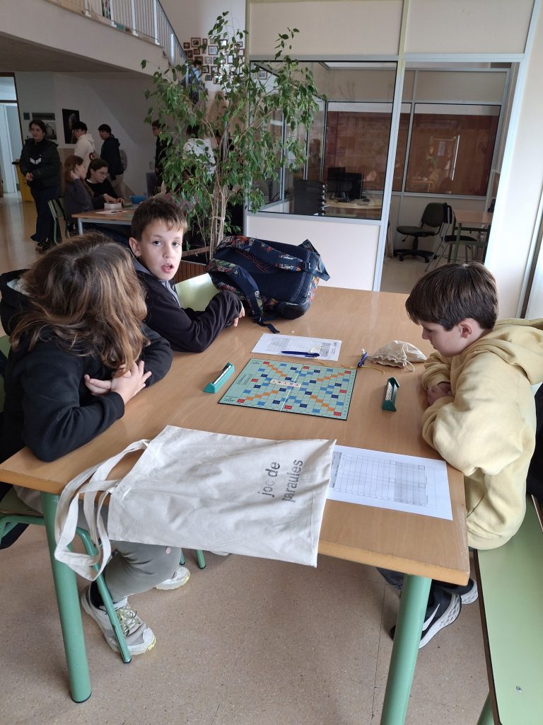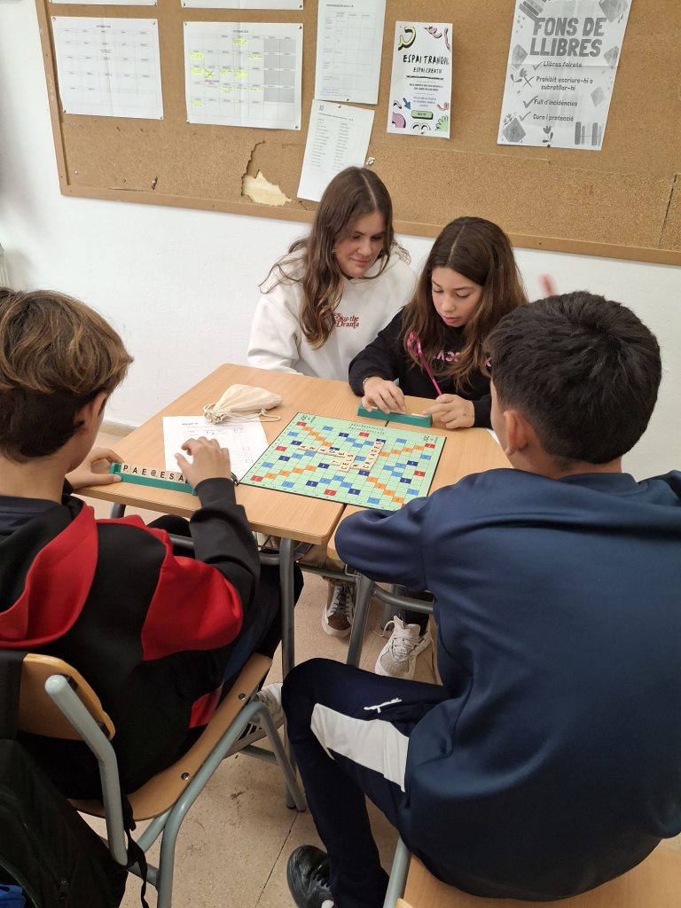 Aquesta setmana ha començat la lliga d’Scrabble, en què participa l’alumnat de 1r d’ESO. S’hi han apuntat 20 alumnes que formen 10 equips, ja que el joc es juga en parelles, i la competició tendrà lloc cada dimecres durant el primer pati.