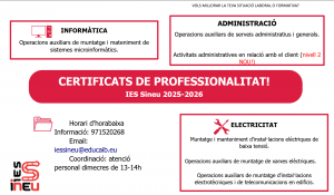 Matrícula oberta certificats de professionalitat fins a final de setembre.