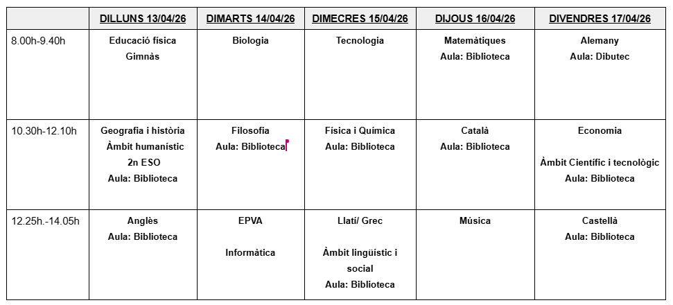 Calendari recuperació de pendents ESO i Batxillerat 25-26 Ester Martínez Luceño05/03/26 CALENDARI RECUPERACIÓ PENDENTS ESO i BATXILLERAT