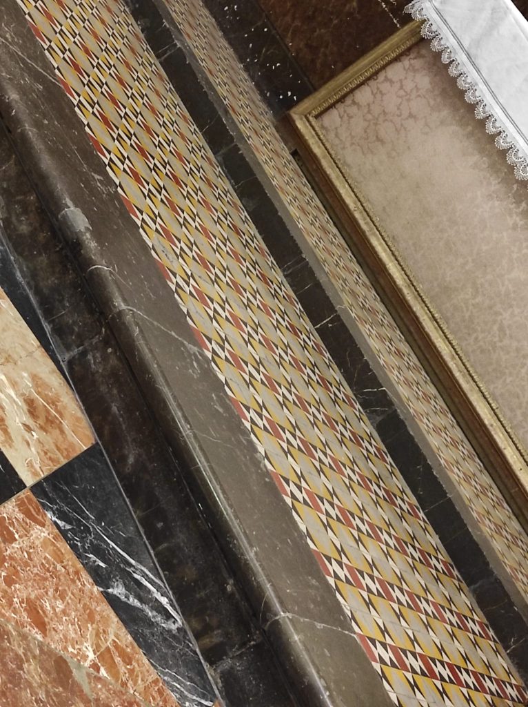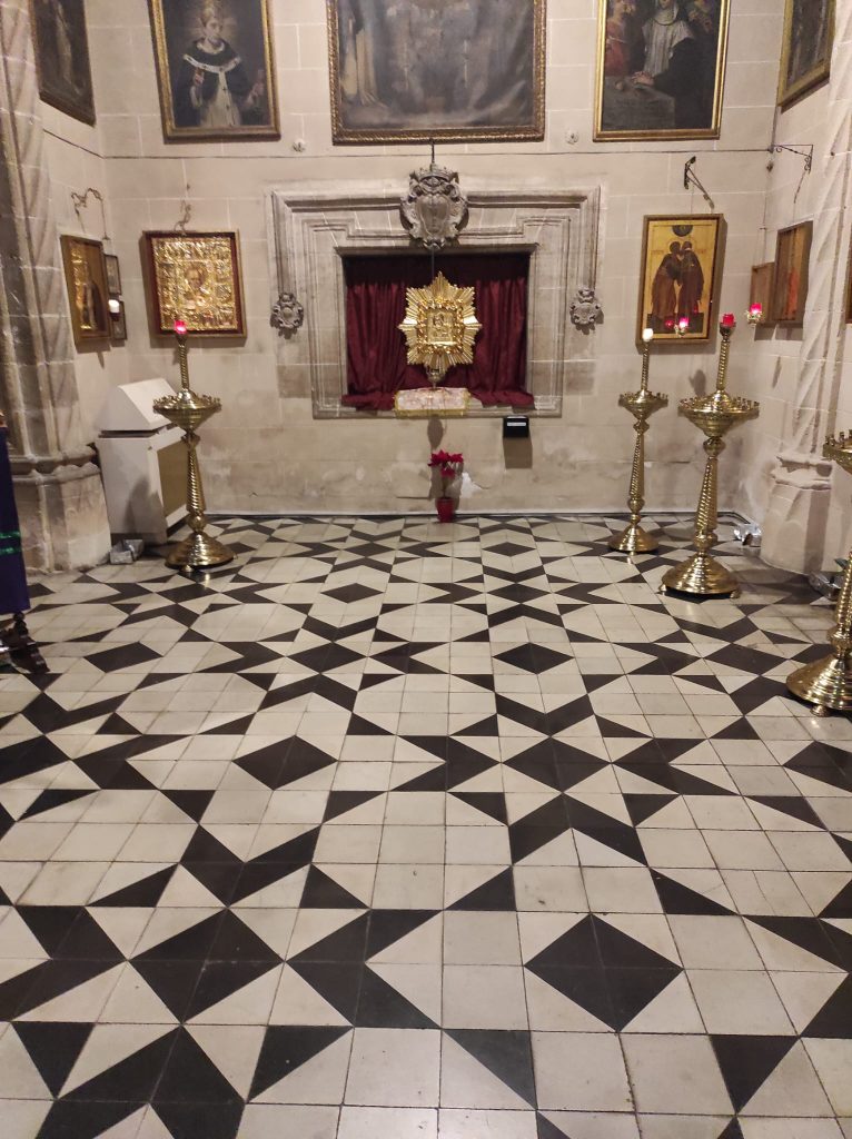A partir de la idea de triangles rectangles isòsceles, es poden construir patrons quadrats amb una riquesa geomètrica extensa. Aquests patrons costa molt trobar-los, però es poden localitzar en alguns llocs, com esglésies: Santa Clara, Santa Creu, la parròquia de Sant Bernat, San Francesc, Santa Eulària…