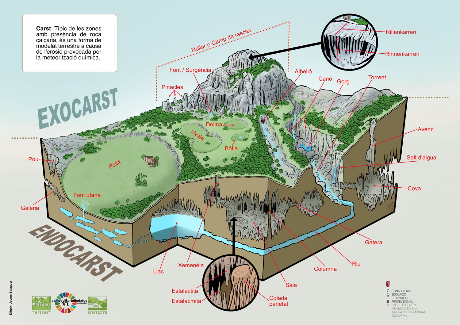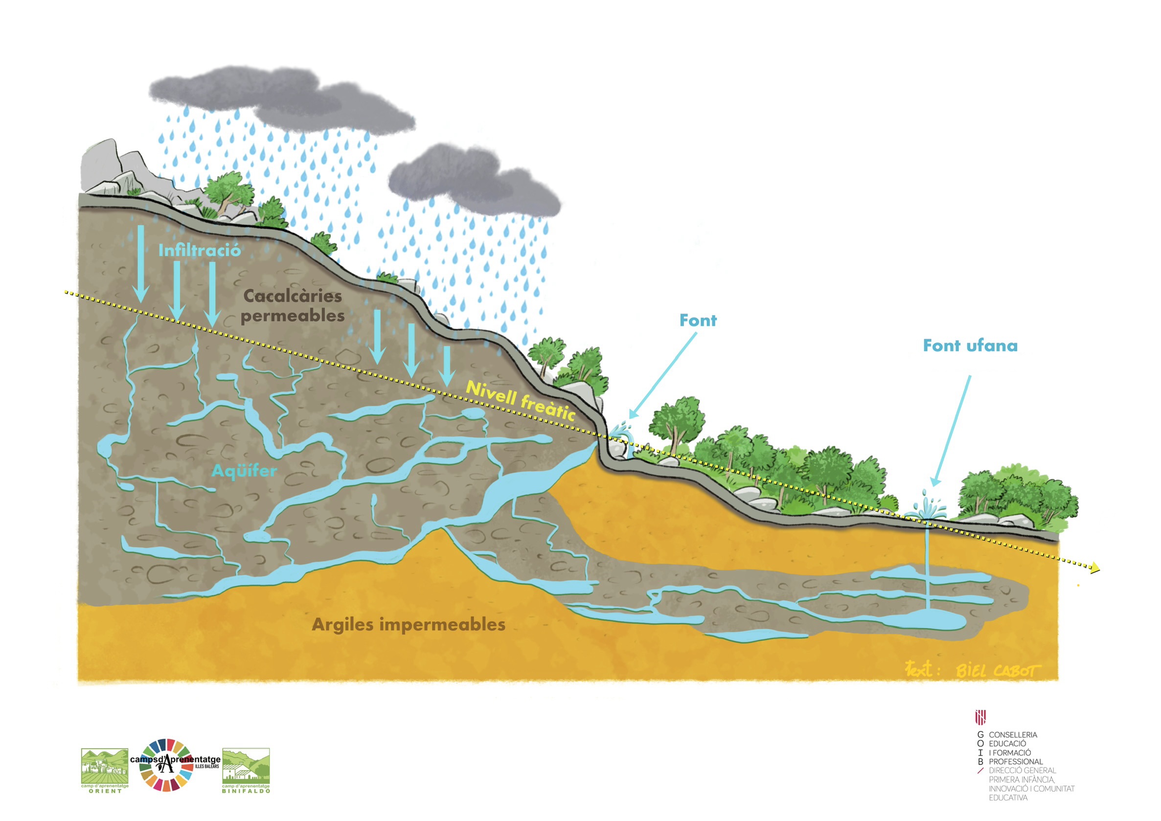 Recursos: Geologia/Gestió i cicle de l’aigua Rossegueres del Puig Tomir (1104 m.) Dossiers Torrents Fonts GestióH2O Carst Rossegueres Infografies Cicle H2O Carst Font Torrent