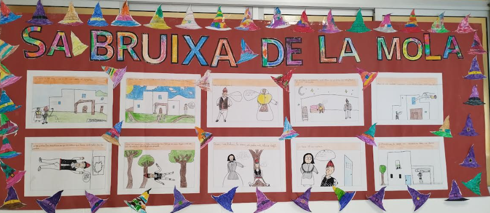 Per finalitzar, s’ha elaborat de forma cooperativa una versió en còmic de la rondalla “Sa bruixa de la Mola” d’en Joan Castelló Guasch. La distribució del treball ha estat la següent: 3r cicle d’educació primària ha dibuixat el còmic, 2n cicle d’educació primària ha escrit les llegendes, 1r cicle d’educació primària ha pintat els dibuixos i educació infantil s’ha encarregat del títol i decoració del panell.